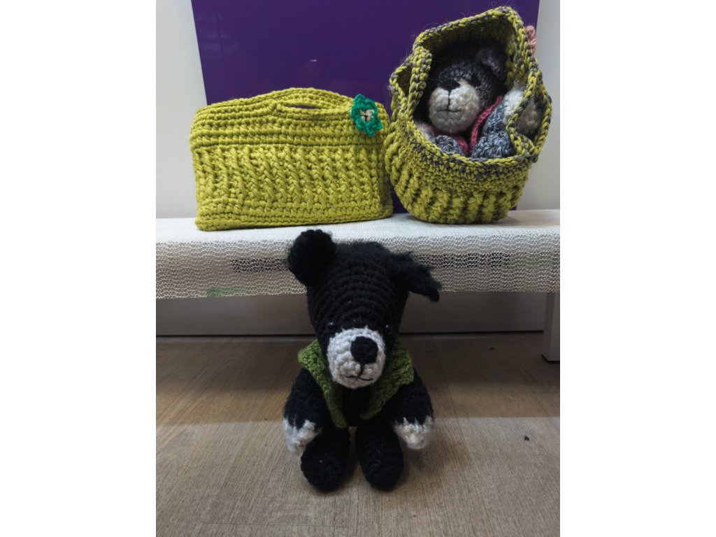 Háčkované štěně v košíku