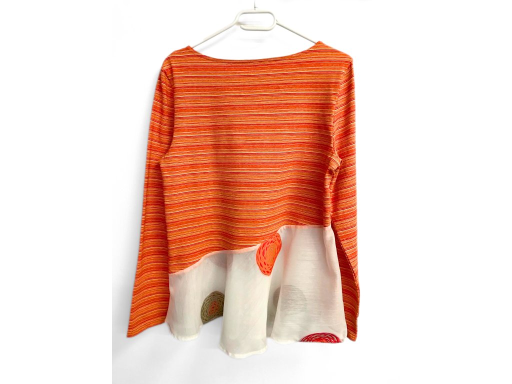 Krásná a elegantní dámská halenka se šikmým volánem.