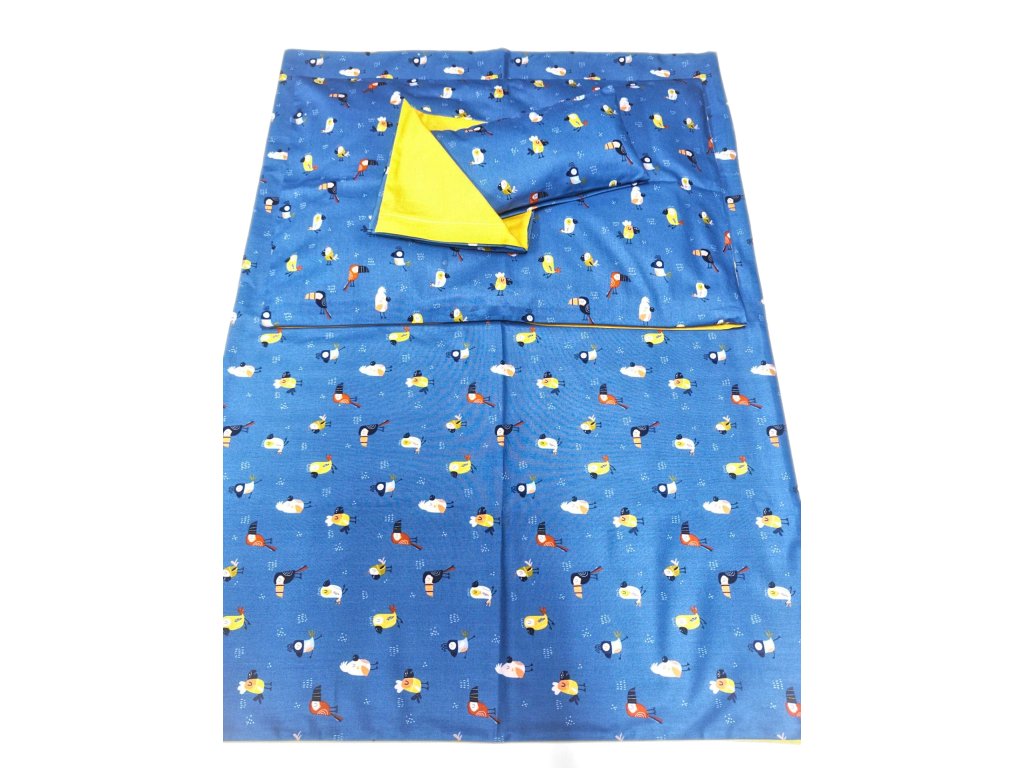 Jedna strana povlečení je jednobarevná, druhá s jemným vzorem tukanů.