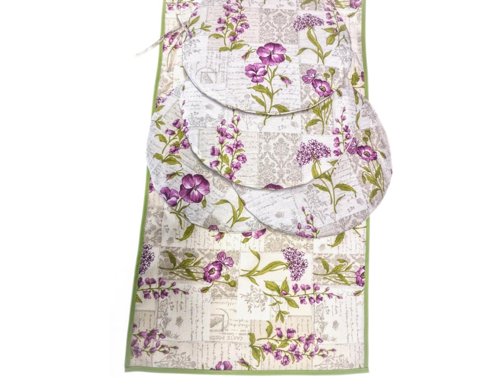 Velikost ubrusu: 100x45 cm, průměr podsedáků: 35 cm